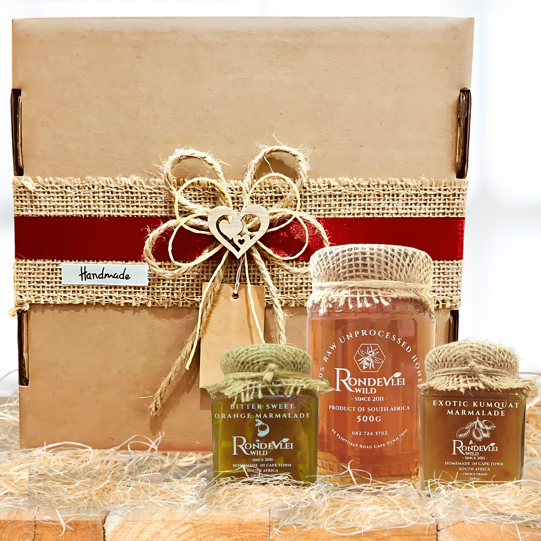 When words fall short, give the gift of honey and hope – a golden symbol of love, light, and warmth. This Gift Box brings together three handcrafted treasures that celebrate the beauty of nature and the spirit of giving: pure waw Honey, Exotic Kumquat Marmalade, and Bitter Sweet Orange Marmalade. Each jar is made in small batches using locally sourced ingredients, capturing the glow of summer sunshine and the comfort of homemade goodness.
