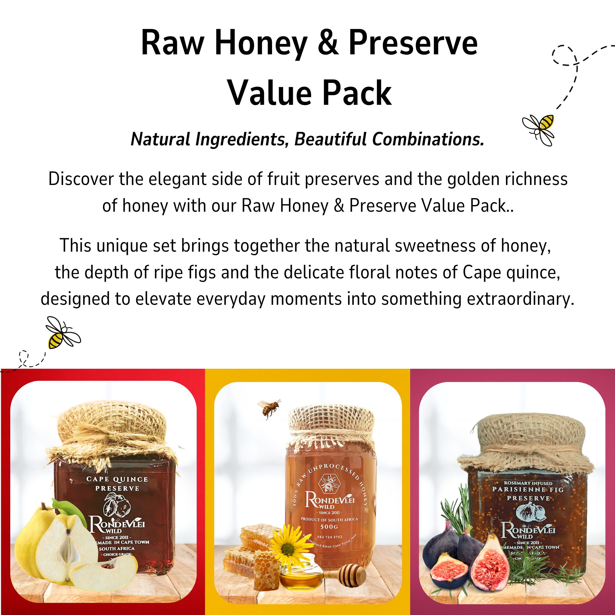 This More-For-Less Raw Honey & Marmalade Value Pack contains: